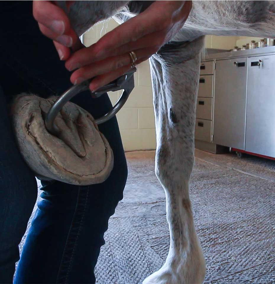 After the examination, we will watch your horse walk and jog (if possible). We use a hoof tester to see if the hoof is tender. We may also do a flexion test to aid in the localization of the lameness.