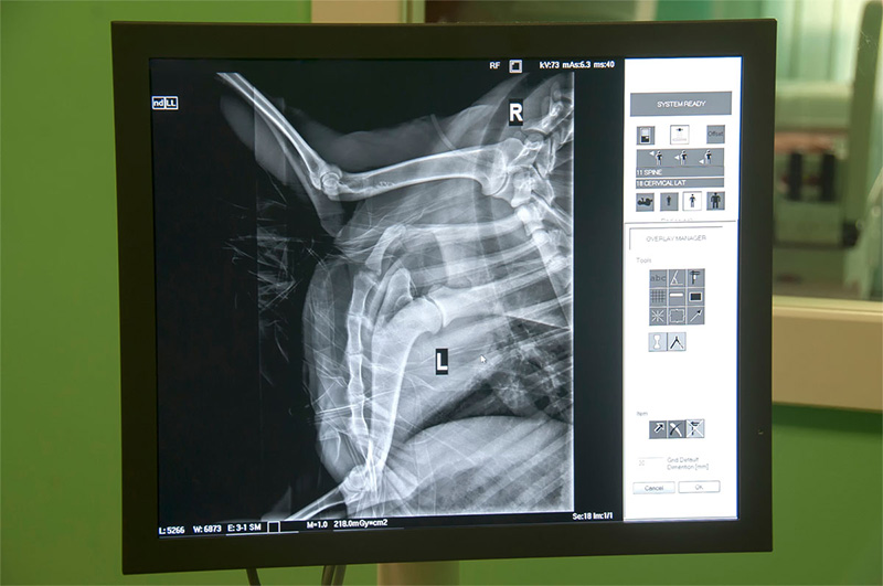 Veterinarians use digital radiology to assess injuries and evaluate the size, shape, and placement of a patient’s organs, to locate growths and masses, and to assess bone health. X-rays can be used to detect and diagnose a variety of diseases and conditions including musculoskeletal, gastrointestinal, respiratory, and cardiovascular diseases, and more.